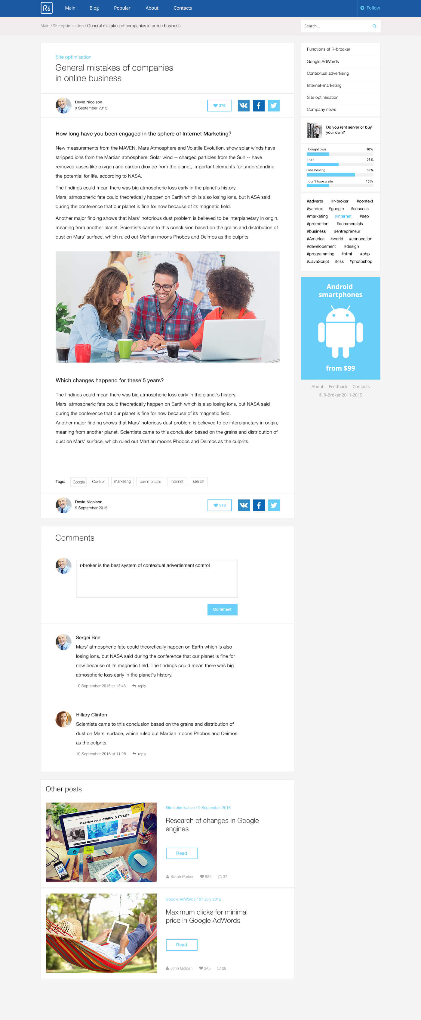 Design for a blog of an SMM company and developing on WordPress